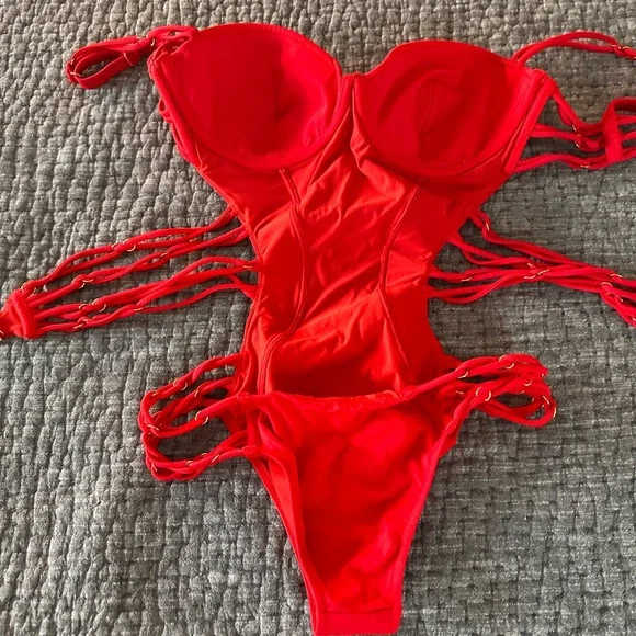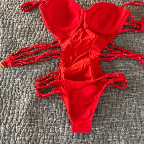This sexy Agent Provacateur one piece swimsuit with excellent bra support is priced to sell!The bra size is 36D.If you prefer more coverage, it will work with a C cup.This suit has underwire support and adjustable shoulder straps.It is so comfortable and supportive; feel like you’re wearing a bra to swim.I have had this suit for about 7 years but it has only been worn a few times.It is in EUC.Gold hardware is in good condition / not tarnished.Better quality and more affordable than what you will find in stores/online.Get it before it’s gone.A must have for busty ladies!You will feel great in this!